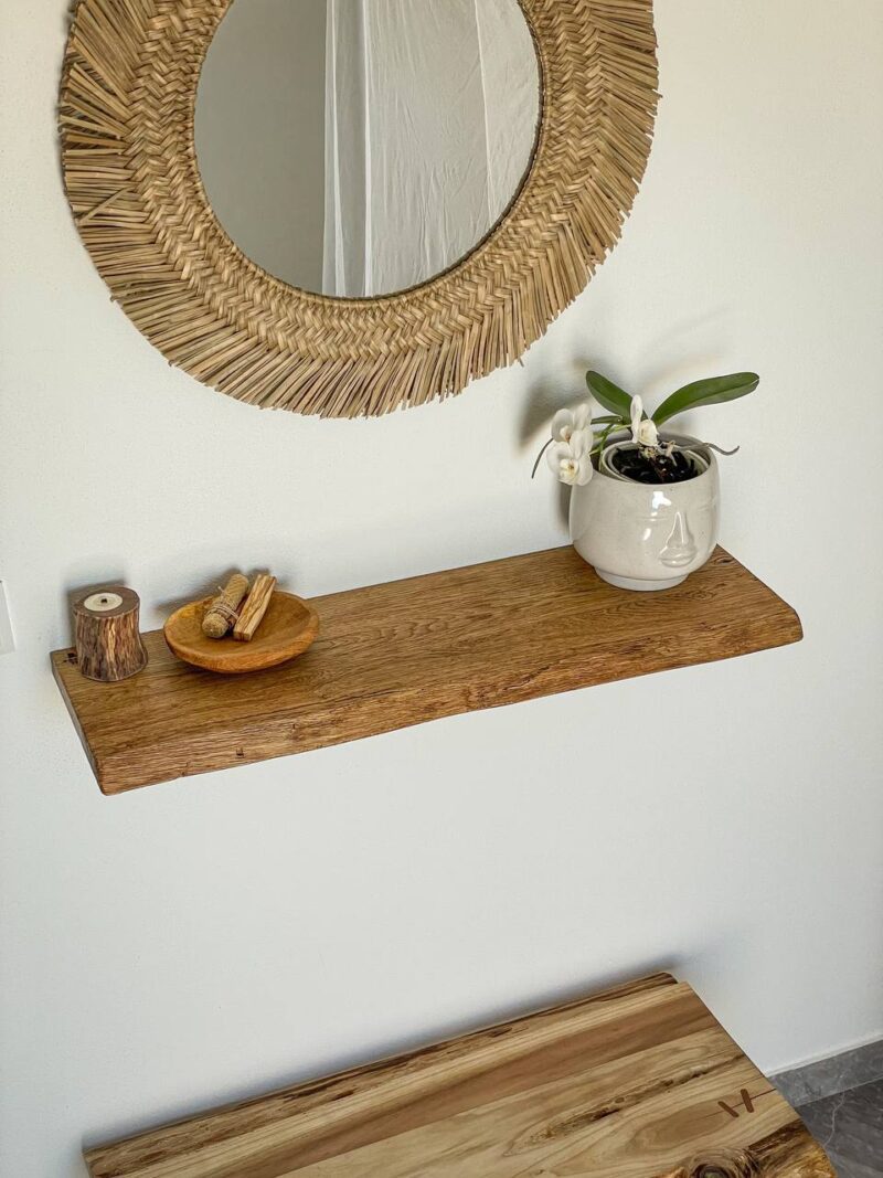 Prateleira “Nature” (Acácia 30mm) com suportes invisíveis